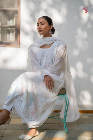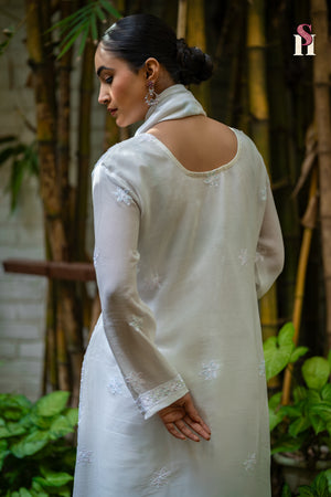 Our chikankari outfits are handmade products, so there might be slight differences between each piece while keeping the overall design and look intact. This happens because people are involved in the crafting process, making each piece unique.