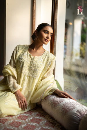 Our chikankari outfits are handmade products, so there might be slight differences between each piece while keeping the overall design and look intact. This happens because people are involved in the crafting process, making each piece unique.