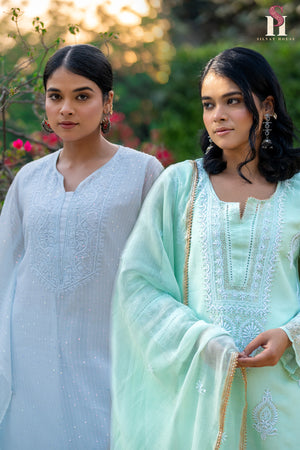 Our chikankari outfits are handmade products, so there might be slight differences between each piece while keeping the overall design and look intact. This happens because people are involved in the crafting process, making each piece unique.