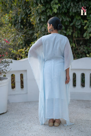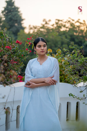The kaftan flows with soft georgette, adorned in delicate Chikankari and subtle sequins, offering breathable comfort and refined elegance from day to night. 🌙✨